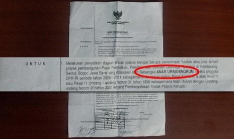 draf sprindik dengan penetapan tersangka Anas dalam dugaan penerimaan