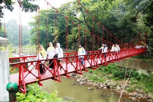Kebun Raya Bogor (KRB) punya satu spot foto yang terkenal, yaitu Jembatan Cinta. Jembatan berwarna merah ini sering jadi lokasi foto, selfie, bahkan pre-wedding.